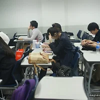 전날 개강총회로 인해 과음을 한 K 단원이 발제를 진행하고 있습니다.